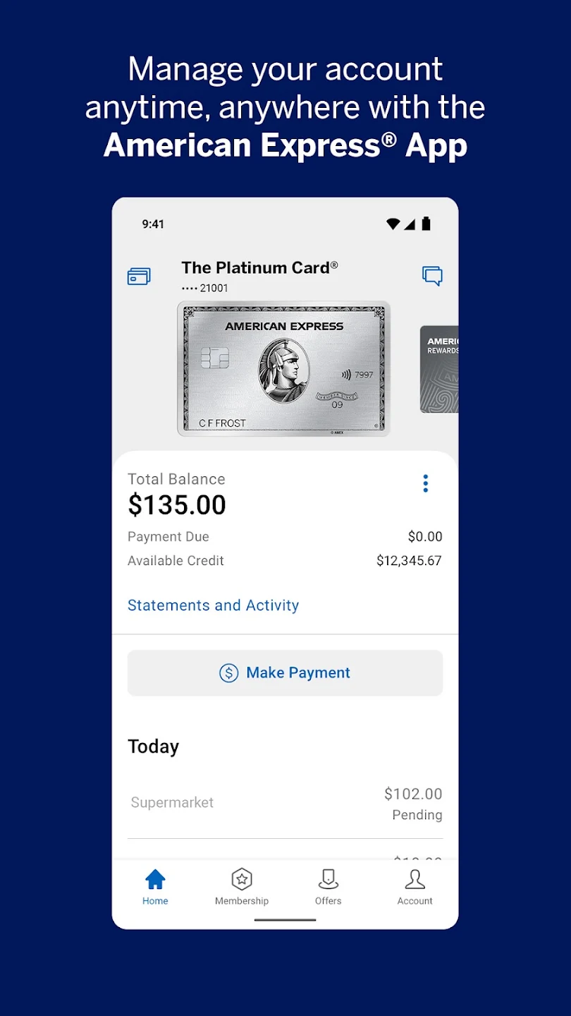 The Amex interface design is simple and clear, and both elderly users and technology enthusiasts can easily get started. The main functions can be accessed on the homepage, reducing the cumbersome navigation steps.